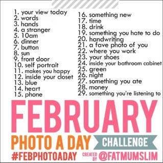 I’m joining in a couple days late but I thought it would be fun to play along with FatMumSlim’s February Photo a Day Challenge.